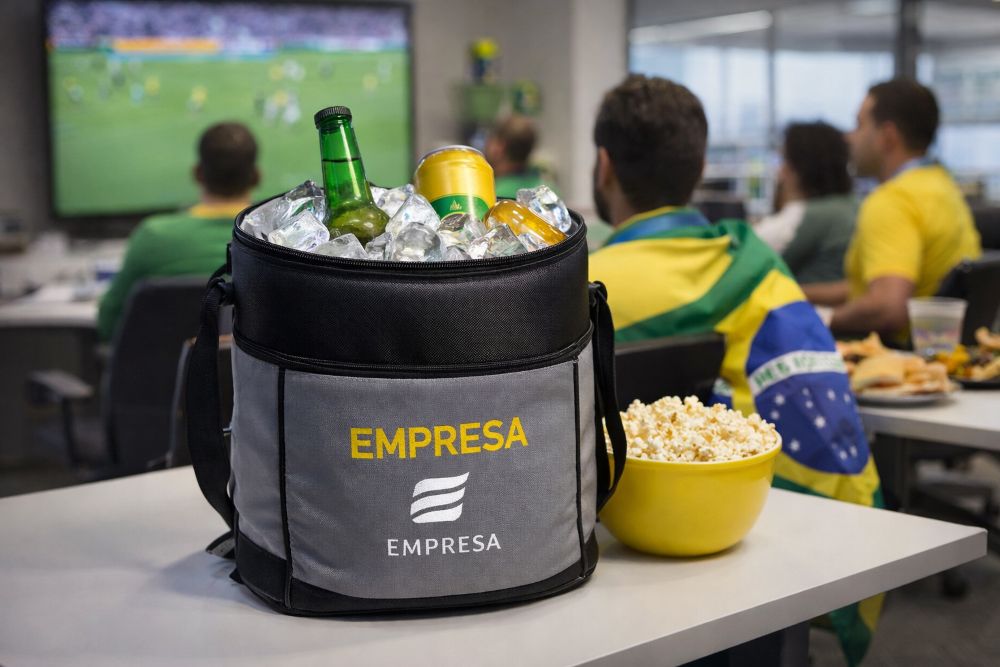 A bolsa térmica personalizada é um dos brindes mais versáteis para a Copa do Mundo. Funciona tanto em ações internas quanto externas e tem alto índice de uso imediato.
