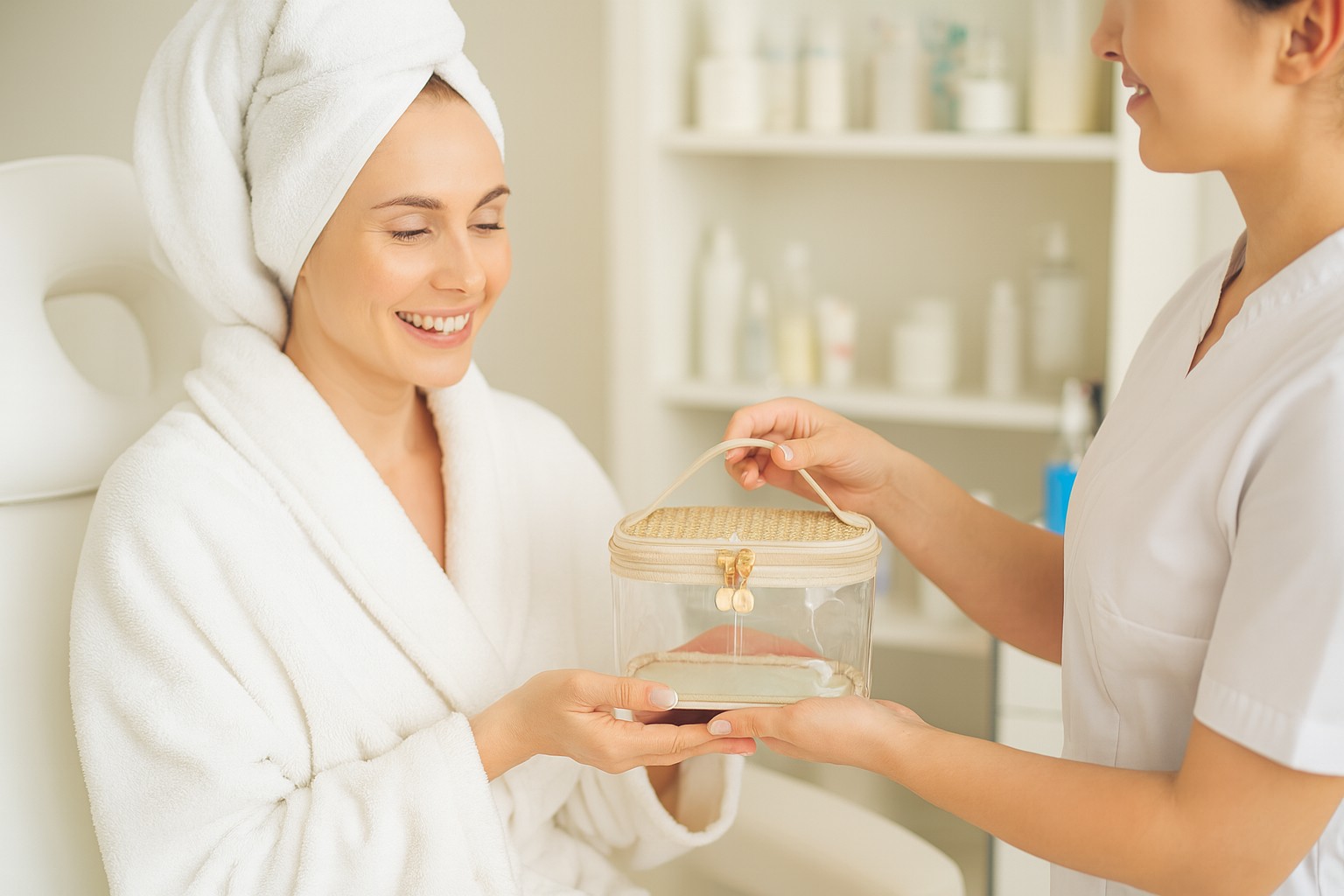 Kits com algodão, lencinhos, mini hidratante facial e um cartão com instruções de cuidados pós-procedimento são extremamente valorizados.